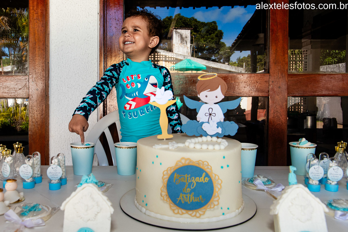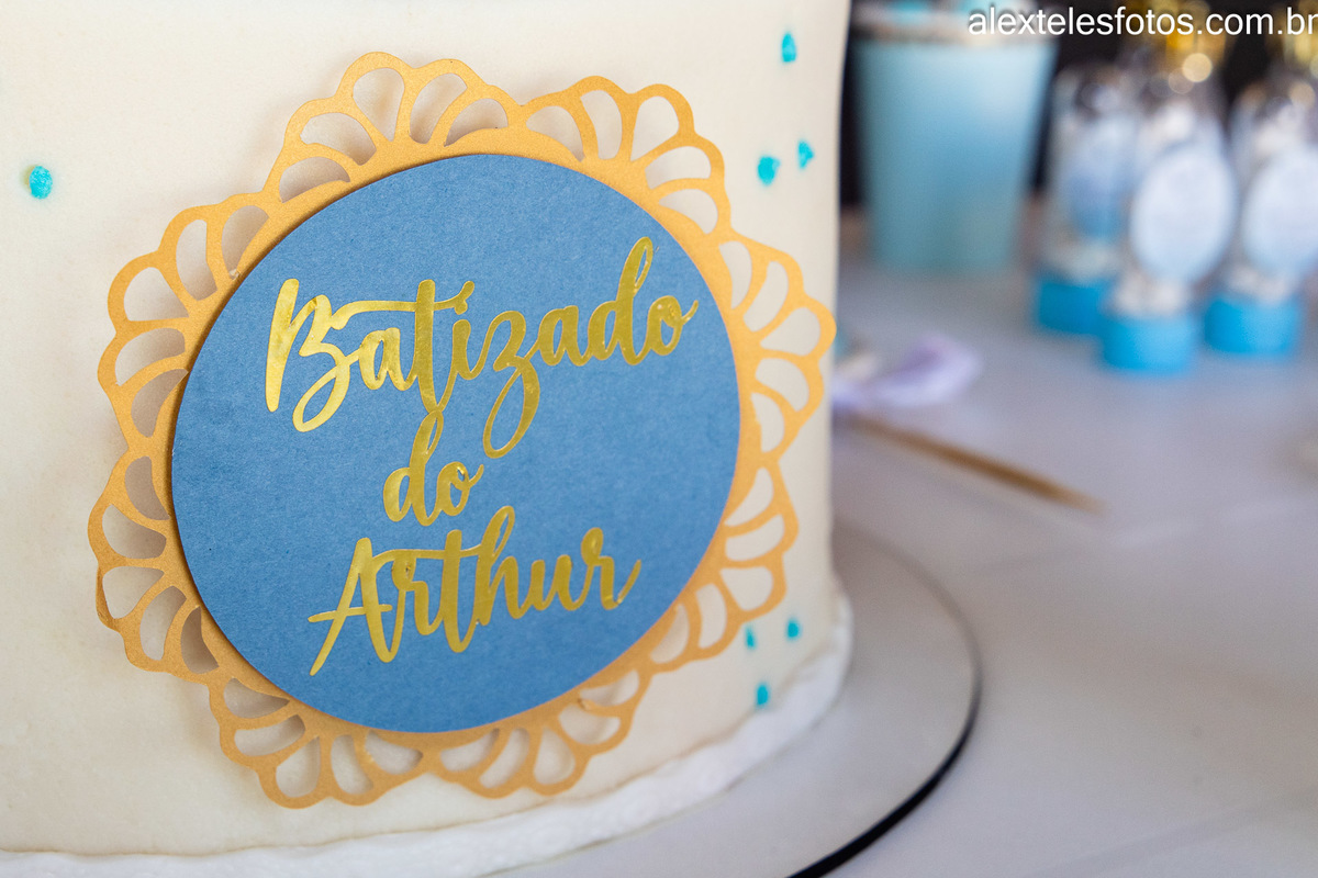 Após a cerimônia, a festividade continuou com uma recepção calorosa, onde todos foram brindados com a alegria da comunhão e da partilha. Enquanto o bolo era cortado e os presentes eram trocados, o pequeno Arthur era o centro das atenções, envolto no amor incondicional de sua família e amigos.